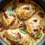 A creamy, indulgent chicken dish with sun-dried tomatoes and Parmesan, cooked effortlessly in a crockpot for a comforting meal.