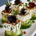 A little cluster of cool cucumber, salty feta and bright cherry tomato — the first bite of these skewers greets you with a crisp snap, a creamy, tangy center and a whisper of herb-scented olive oil. Imagine the clean, green aroma of freshly sliced cucumber, the savory tang of feta melting gently on your tongue, and the faint floral perfume of oregano. The texture contrast — crunchy vegetable, smooth cheese, juicy tomato — makes every skewer unexpectedly joyful.