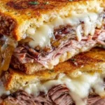 There’s something instantly comforting about a sandwich that sings of warm kitchens and cozy evenings—this French Dip Grilled Cheese does exactly that. Imagine the steam rising as you press the golden-brown bread: a buttered crust that crackles; the nutty, slightly sweet aroma of melting Swiss cheese; tender, savory ribbons of roast beef; and glossy caramelized onions that melt into each bite. Dip it into a steaming, fragrant au jus and you get a savory, slightly salty, deeply satisfying mouthful that balances crisp texture with silky, melty interior.
