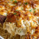 There’s something utterly comforting about the moment a casserole emerges from the oven: a warm, onion-sweet aroma that curls through the kitchen, a golden, bubbling crust that promises creamy, savory satisfaction beneath. This French Onion Chicken Orzo Casserole layers deeply caramelized onions, tender orzo, shredded chicken and rich, melty cheeses into one cozy, weeknight-friendly bake. The textures sing together — silky cream, chewy little orzo pearls holding savory broth, and strands of juicy chicken — while the taste recalls a classic French onion soup with a hearty, family-friendly twist.