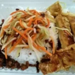 A delightful blend of juicy mango and tender chicken served over fluffy jasmine rice, bringing tropical sweetness and savory flavors to your table.
