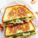 There’s a moment when the sizzle of butter meets hot cast iron and the scent of toasty bread and basil-heavy pesto fills the kitchen—this sandwich lives in that moment. The first bite gives way to a golden, crunchy exterior that yields to molten, stringy cheese, brightened by herbaceous pesto that cuts through the richness. It’s comforting and a little celebratory at once: nostalgic like a childhood grilled cheese, but sophisticated enough to serve at a casual dinner party.