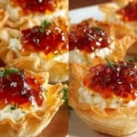 There’s a small, irresistible thrill in the first bite: a crisp, golden phyllo shell giving way to pillowy cream cheese that melts across your tongue, followed by a bright, sweet-heat burst from red pepper jelly. The aroma is buttery and toasted with a whisper of thyme; the taste is a perfect balance of cool creaminess and lively peppered sweetness. These little bites are pure party magic — they feel elegant, but they’re ridiculously easy to make.