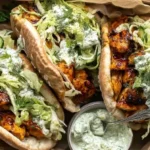 With a golden crust kissed by the oven’s heat, the aroma of smoked paprika and garlic dances through your kitchen, beckoning you closer. The warmth of fresh pitas, filled with juicy pieces of chicken, crisp cabbage, and an herb-infused ranch slaw, creates a medley of textures that satisfy every bite. As you take a mouthful, the creamy yogurt dressing envelops your taste buds, delivering a delightful tang. This is not just dinner; this is a culinary hug that transforms your ordinary evening into a comforting feast.