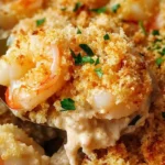A comforting shrimp casserole with a crunchy topping, creamy sauce, and cheesy goodness that’s perfect for gatherings or a cozy evening at home.