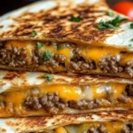 A warm, sizzling quesadilla that sings like your favorite burger—crispy tortilla edges, a caramelized beef crust, gooey melted cheese and that tangy pop of pickle or sauce. The aroma of seared beef and toasted flour tortillas fills the kitchen, promising comfort and a little bit of indulgence. The first bite gives you contrast: the crisp outer shell, the charred “smash” flavor of thinly pressed beef, and that molten cheese that strings deliciously from plate to mouth. It’s familiar yet playful—the best of diner-style burgers reinvented as a hand-held, shareable treat.