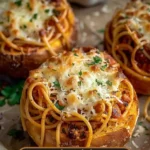 There’s something deeply comforting about the crackle of toasted garlic bread giving way to a steaming nest of saucy spaghetti—Spaghetti Garlic Bread Bowls are kitchen theater and cozy dinner rolled into one. Imagine tearing into a crisp, buttery garlic shell and discovering warm pasta swirled with tangy tomato sauce, melty cheese stretching with every forkful, and flecks of bright basil on top. The aroma of roasted garlic and oregano, the contrast between crunchy bread and silky pasta, the salt-sweet balance of tomato and cheese—all of it invites both nostalgia and delight.