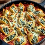 There’s a moment when the oven timer dings and the house fills with a warm, tomato-and-cheese perfume that instantly slows everything down — that’s the smell of comfort. These spinach and ricotta stuffed shells bake into bubbling pockets of creamy, herbed ricotta, tender pasta that yields with a satisfied tug, and a golden, slightly crisped cheese top. The first bite gives you a silky ricotta center, flecked with bright spinach and Parmesan, balanced by tangy marinara and the soft chew of jumbo shells. Texturally, it’s a gentle contrast: creamy filling, al dente pasta, and the occasional crisp edges where sauce and cheese have caramelized.