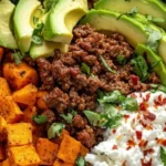 Imagine the warm, earthy scent of roasted sweet potatoes mingling with smoky paprika and sizzling beef—bright pops of tomato and cilantro cut through with lively lime, a creamy whisper of avocado, and a cool tang of sour cream. Every bite of this Sweet Potato Taco Bowl delivers a satisfying contrast: tender, caramelized cubes against savory, spiced meat; juicy, fresh pico; and silky guacamole. It’s the kind of dish that feels like a hug after a busy day, yet bright enough to lift your mood.
