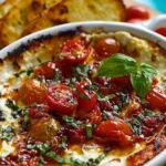 This dip combines instant gratification with nostalgia. It’s irresistibly aromatic when it comes out of the oven — melting cheeses and roasted tomatoes create savory, slightly sweet perfume that instantly draws people in. It’s also wonderfully social: easy to place center-stage for sharing, it encourages conversation and casual grazing. The recipe is quick enough for last-minute entertaining, forgiving to scale up or down, and versatile enough to fit seasonal tweaks (summer tomatoes or winter roasted grape tomatoes). If you love the classic bruschetta flavor but want something warm, cozy, and shareable, this is the dish for you.