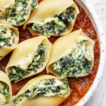 Imagine pulling a foil-covered casserole from the oven and being greeted by the warm, herb-scented steam of tomato and garlic. The shells glisten with a bright marinara, and when you spoon one onto a plate the creamy, slightly tangy cashew-tofu filling yields with a satisfying, silky texture. Each bite offers a contrast: the gentle chew of al dente pasta, the velvet richness of blended cashews and tofu, and the tender, savory pop of spinach. It’s comfort food that smells like Sunday dinners and tastes like home, but made wholly plant-based.
